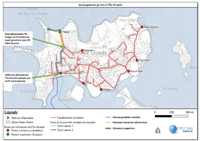 5. Transferts des eaux usées de l’Ile Grande vers la future station du bourg :